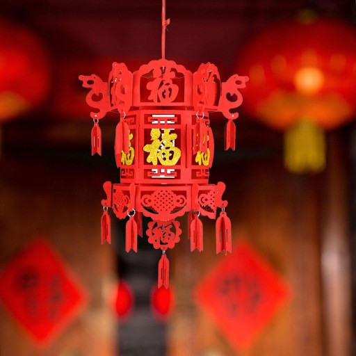 Красный китайский фонарик Фу, висящая фигурка, легко собрать Happy