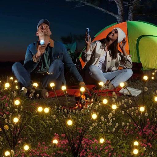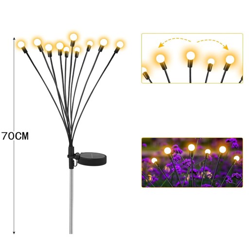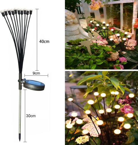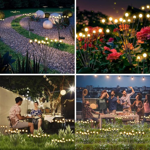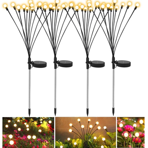☑️4 Zestaw 10 świetlików LED na energię słoneczną kołysze się na wietrze jak rój świetlików lecących w ciemności, tworząc romantyczną atmosferę w Twoim ogrodzie.
