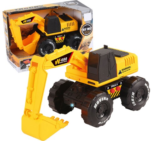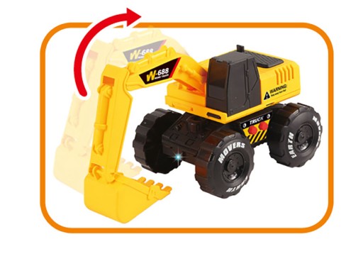 To prawdziwa gratka dla najmłodszych fanów motoryzacji i majsterkowania. Model pojazdu wzorowany na prawdziwym pojeździe budowlanym zachwyci każdego malucha! Ciekawe wykonanie, wbudowane dźwięki, święcące światła na pewno zadowolą każde dziecko. Dodatkowo koparka posiada ruchomą łyżkę, możemy nią operować jak w prawdziwym pojeździę budowlanym, a także korpus pojazdu obraca się o 360'. Ponadto dzięki napędowi typu friction power możemy rozpędzić autko.