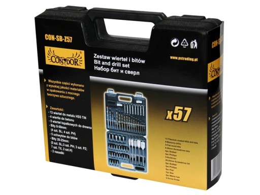 Zestaw 57 wierteł Condor sprawdzi się zarówno w profesjonalnym warsztacie, jak i garażu domowego majsterkowicza