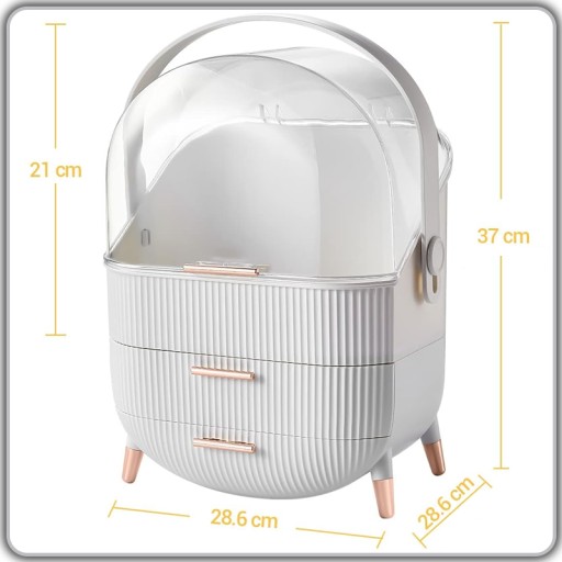 ⭐ Dolne dwupoziomowe szuflady są wyposażone w przezroczyste pokrywy, co chroni Twoje kosmetyki przed kurzem i wilgocią.