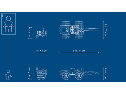 - Ucieczkowy łazik Emmeta ma ok. 4 cm wysokości, 15 cm długości i 6 cm szerokości.