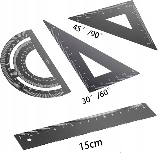 s-Linijka Metalowa Zestaw Linijki Kątomierz Ekierka