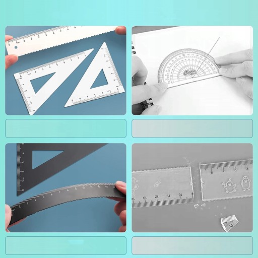Gra w geometrię matematyczną zawiera: 1 * 15 cm linijka, 1 * 30°/60° kwadrat, 1 * 45/° 90 ° linijka kwadratowa i 1 kątomierz. Materiał: Zestaw do geometrii jest wykonany z wysokowytrzymałego stopu aluminium, który jest mocny, niezawodny, trwały i zmniejsza zginanie i wypaczenie. Przenośna pamięć masowa: Przezroczyste pudełko jest wygodne do przechowywania i przenoszenia, możesz zobaczyć wewnętrzne artykuły papiernicze. Najwyższej jakości: Brak ostrych krawędzi, wszystkie pomiary są grawerowane laserowo, czytelne, nie blakną. Szerokie zastosowania: idealne dla biura i szkoły, inżynierii, studentów, inżynierów lub kogokolwiek.