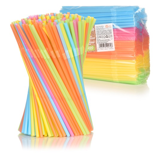 ЦВЕТНЫЕ ПЛАСТИКОВЫЕ ТОЛОМИНКИ ДЛЯ НАПИТКОВ, РАЗБИВАЕМЫЕ, МНОГОРАЗОВЫЕ, 210ммх5мм, 500 шт.