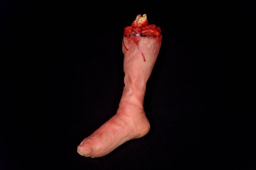 Przedstawiamy sztuczną, gumową nogę, ociekającą krwią, która wyglądem przyprawia o dreszcz.