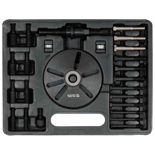 Dane techniczne:Symbol: YT-25483Seria: GRDMateriał: stal węglowaZastosowanie: do kół pasowychWykończenie powierzchni: czernionaZawartość zestawu: talerz ściągacza z łożyskiem czołowym|śruba ściągacza|śruba centrująca x9|śruba x12|podkładkiLiczba sztuk w zestawie: 2323-elementowy zestaw z tłumikiem drgań przeznaczony do kół pasowych.zawiera: talerz ściągacza z łożyskiem czołowym, śrubę ściągacza, 9 śrub centrujących, 12 śrub i podkładkimateriał: czerniona stal węglowazapakowany w poręczną walizkę**