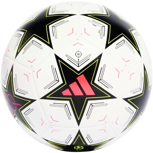 Piłka nożna adidas. Maszynowo szyta konstrukcja. Wielokolorowy design to inspiracja z oficjalnej piłki meczowej używanej podczas rozgrywek Ligi Mistrzów UEFA. Syntetyczna, teksturowa powłoka z TPU oraz butylowy pęcherz.