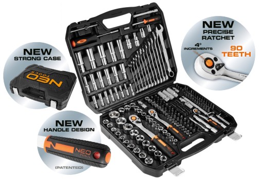 DANE PODSTAWOWE Wymiar brutto (szer x wys x dł.)37,50 x 9,00 x 45,00 cm Waga10.85 kg MarkaNEO TOOLS PKWiU25.73.30.0 Certyfikat TÜV Rheinland M+TTak Ilość kluczy imbusowych w zestawie10 szt 2 Tak Ilość sztuk w zestawie219 szt Materiał wykonania produktustal chromowo-wanadowa (CrV) Rozmiar kwadratu napędowego1/4", 3/8", 1/2" WalizkaTak Końcówki wkrętakowe w zestawiebity 1/4”, 25 mm, 44 szt.: HEX3, HEX4, HEX5, HEX6, HH3, HH4, HH5, HH6, PH1, PH2, PZ1, PZ2, TX8, TX10, TX15, TX20, TX25, TT8, TT10 x2, TT15, TT20 x3, TT25 x2, TT40, M5, M6, M8, SL4, SL5, SL5.5 TRI-WING: 1, 2, 3 TORQ 6, 8, 10, S1, S2, płaskie 4, 6, 8 Uchwyt w zestawieuchwyt do bitów 1/2", 5/16” + uchwyt do bitów 3/8”, 5/16” Grzecka w zestawie1/2", 90 zębów, przełącznik kierunku obrotów Przedłużka w zestawie1/2” 2 szt.: 125 mm i 250 mm Nasadka w zestawienasadki sześciokątne 1/2" 15 szt.: 10, 11, 12, 13, 14, 15, 17, 19, 20, 21, 22, 24, 27, 30, 32 mm Nasadka w zestawienasadki sześciokątne 3/8" 10 szt.: 10, 11, 12, 13, 14, 15, 16, 17, 18, 19 mm Nasadka w zestawienasadki sześciokątne 1/4", 13 szt.: 4, 4.5, 5, 5.5, 6, 7, 8, 9, 10, 11, 12, 13, 14 mm Klucze płasko-oczkowe w zestawie8, 9, 10, 11, 12, 13, 14, 15, 16, 17, 18, 19 mm Klucze imbusowe w zestawie1.27 mm (x2), 1,5 mm (x2), 2 mm(x2), 2,5 mm, 3 mm, 4 mm, 5 mm Pokrętło w zestawie1/4" pokrętło z zabierakiem 115 mm Grzecka w zestawie1/4", 90 zębów, przełącznik kierunku obrotów Przedłużka w zestawie1/4" 2 szt.: 50 mm i 100 mm Nasadka w zestawie1/4", długie sześciokątne, 7 szt.: 4, 5, 6, 7, 8, 9, 10 mm Nasadka w zestawie1/2", długie sześciokątne, 5 szt.: 16, 17, 18, 19, 22 mm Końcówki wkrętakowe w zestawiebity 5/16” , 30 mm, 30 szt.: TX25, TX27 x2, TX30 x2, TX35 x2, TX40 x3, TX45 x2, TX50 x2, HEX5.5, HEX6 x2, HEX7, HEX8, SL6, SL6.5, SL8, PH3, PH4, PZ3, PZ4, M5, M6, M8, M10 Przegub w zestawie1/2", uniwersalny Przegub w zestawie1/4", uniwersalny Adapter w zestawie1/2" z otworem Przedłużka w zestawie3/8" 125 mm Przegub w zestawie3/8", uniwersalny Nasadka w zestawie3/8", długie sześciokątne, 6 szt 10, 11, 12, 13, 14, 15 mm Nasadka w zestawienasadki E 1/2" 4 szt.: E18, E20, E22, E24 Nasadka w zestawienasadki E 1/4", 5 szt.: E4, E5, E6, E7, E8 Uchwyt w zestawie1/4", wkrętakowy Grzecka w zestawie3/8", 90 zębów, przełącznik kierunku obrotów Nasadka w zestawienasadki E 3/8” 5 szt.: E8, E10, E12, E14, E16 Nasadka w zestawiedo świec 1/2" 16 mm i 21 mm 3/8” 18 mm Nasadka w zestawie1/4" z bitami, 30 szt.: SL4, SL5.5, SL6.5, SL7, PZ1, PZ2, PZ3, TX8, TX9, TX10, TX15, TX20, TX25, TX27, TX30, TT8, TT9, TT10, TT15, TT20, TT25, TT27, TT30, HEX3, HEX4, HEX5, HEX6, PG1, PG2, PG3 nasadka 1/2" z bitem: T55, T60 Uchwyt w zestawie1/4", uchwyt wkrętakowy do bitów Uchwyt w zestawieuchwyt do końcówek 50 mm