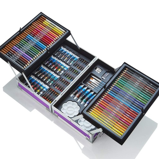 Duży zestaw – aż 145 elementów, zróżnicowana kolorystyka przyborów i możliwość doświadczania różnych technik rysunku