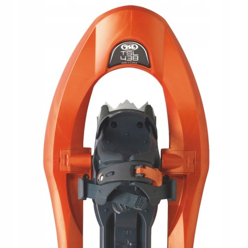 Zapięcie pozwala na szybkie, precyzyjne i wygodne dopasowanie oraz zapamiętanie rozmiaru buta (przód stopy + rozmiar). Mocowanie rakiet śnieżnych TSL 438 Up & Down Grip jest wyjątkowe dzięki 8 rakom, przedniej siatce i bocznym uchwytom.