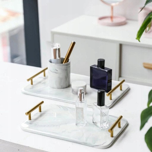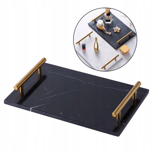 1 marmurowa taca ze złotymi metalowymi uchwytami