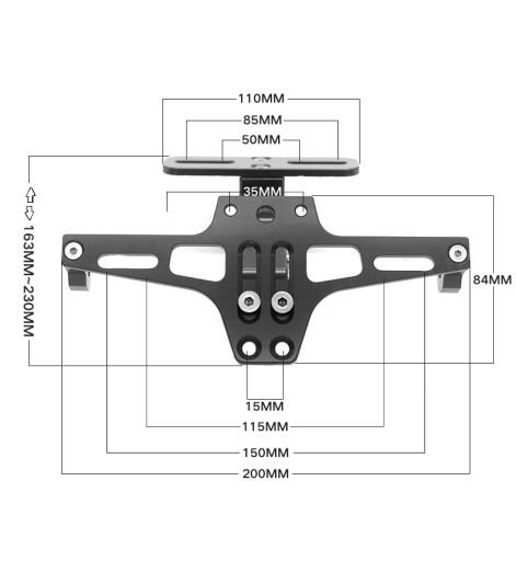 - Uchwyt tablicy rejestracyjnej motocykla może regulować kąt poziomy w zależności od podłoża, aby uzyskać najlepszy widok homologacji drogowej.