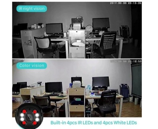 Wyposażony w 4 białe diody LED i 4 aktywne diody IR, zapewnia światło i piękne wideo w dzień/w nocy.