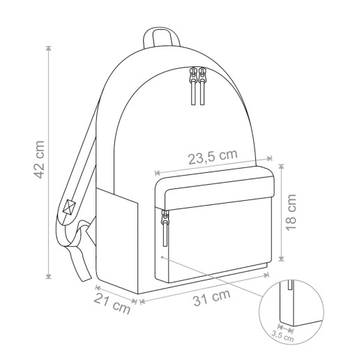 Głównym atutem tego plecaka jest jego uniwersalna stylistyka, ale to nie koniec jego zalet. Plecak posiada dwie kieszenie zapinane na zamek: główną komorę, w której zmieścisz książki, tablet i lunchbox oraz kieszonkę z przodu, która może służyć do przechowywania drobnych rzeczy. Plecak wykonany jest z trwałego materiału, który nie dość, że jest praktyczny, bo wyczyścisz go wilgotną gąbką, to zabezpieczy rzeczy w środku przy lekkim deszczu. Dzięki wygodnym, regulowanym szelkom i wzmocnionym plecom, plecak gwarantuje wygodę użytkowania.