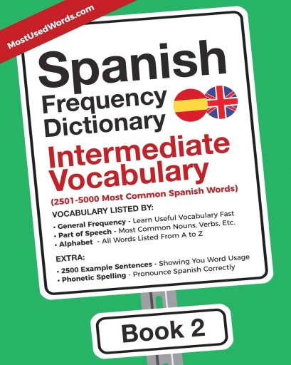 The Spanish Frequency Dictionary – Intermediate Vocabulary gives you a practical word list to learn Spanish vocabulary. Study the most used words to rapidly gain a base vocabulary in Spanish. These high frequency words are a great tool for beginners and intermediate students of Spanish.