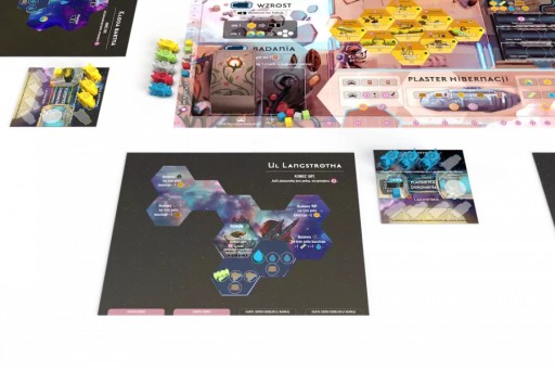 - Podobnie jak inne gry stworzone przez Stonemaier Games, również Apiary cieszy oko dopracowanym wykonaniem. Szczegółowe figurki pszczół i górująca nad nimi figurka statku matki, drewniane znaczniki zasobów, a także dobrze zaprojektowana wypraska z pewnością ucieszą każdego fana estetycznych planszówek.