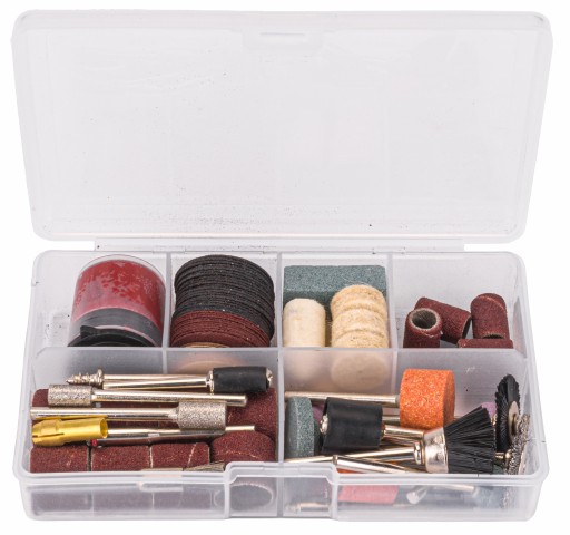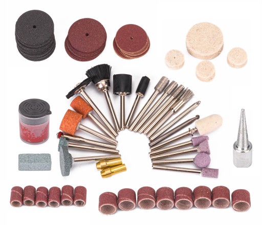 - Zestaw trzpieni, tarcz, filców, frezów, papierów ściernych