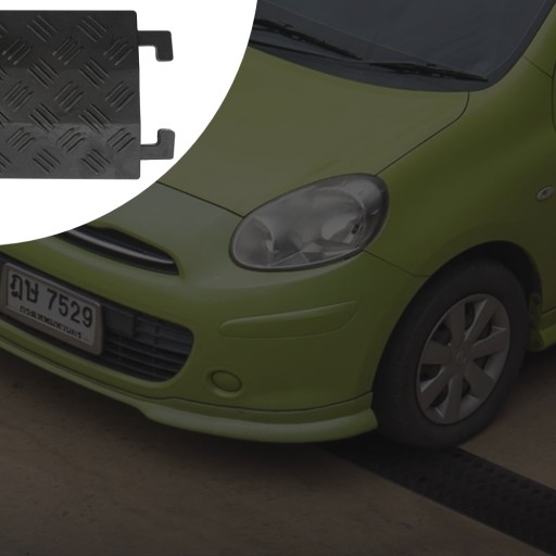 Nie posiada żadnych elementów metalowych, co zapobiega korozji i łatwemu zniszczeniu. Jest odporny na niekorzystne warunki atmosferyczne oraz substancje oleistych, żrące i lotne, takie jak kwasy i benzyna. Najazd jest w kolorze czarnym i posiada złącza w kształcie litery "L", które pozwalają na połączenie go z innymi progami. To połączenie jest trwałe i trudne do rozłączenia przez przechodniów i najeżdżające pojazdy.