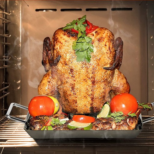 🔥【Pionowe mocowanie】 Utrzymuj kurczaka w idealnej, pionowej pozycji blokującej, zbieraj wszystkie pyszne potrawy i gotuj 4 różne warzywa jednocześnie. Nie martw się, że kurczak się przewróci lub przewróci. Nasz wyjątkowy mechanizm blokujący utrzymuje kurczaka na miejscu. Kurczak można łatwo wyjąć po ugotowaniu. Uchwyt ze stali nierdzewnej jest bardzo trwały i mocny. Może utrzymać kurczaka o normalnej wielkości.