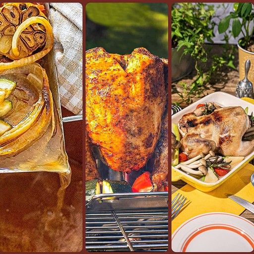 🔥【Łatwy w użyciu】 Ruszt jest łatwy w montażu, wystarczy położyć wybrane mięso w pozycji pionowej na uchwycie, ten uchwyt można umieścić w grillu, piekarniku lub grillu. Dzięki temu rusztowi można za każdym razem przygotować idealne, soczyste i smaczne mięso. Stojak na kurczaka zawiera 2 kolce warzywne do grillowania ziemniaków i kukurydzy z boku.