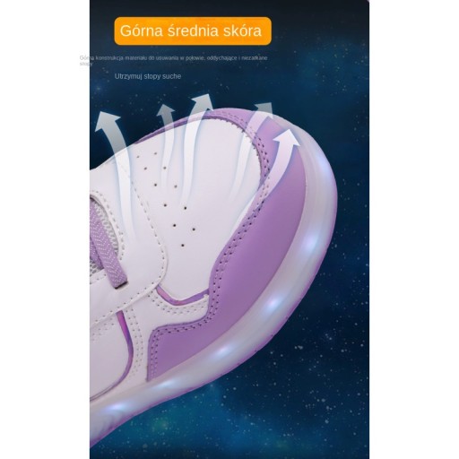 ✅Podświetlenie led uruchamia się automatycznie przy każdym kroku (tupnięciu) lub można w dowolnym czasie je włączać/wyłączać przy pomocy przycisku schowanego przy języku buta.
