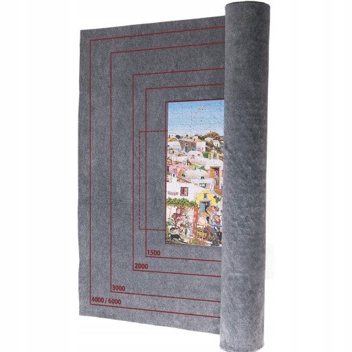 Filcowa mata do układania puzzli wysokoelementowych. Pozwala układać i przechowywać niedokończone układanki. Na macie znajdują się nadrukowane ramki dla układanek od 500 do 3000-elementów.