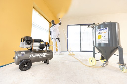 - malowania wszelkimi gęstymi emulsjami i lakierami (farby akrylowe, alkidowe, epoksydowe, poliuretanowe, winylowe, syntetyczne, chlorokauczukowe) oraz nakładania tapet natryskowych (akrylowe, lateksowe, silikonowe, mineralne, strukturalne),