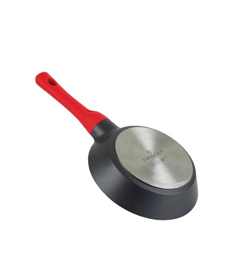 Patelnia Zwieger z odlewanego aluminium. Wewnętrzną część naczynia pokrywa innowacyjna, nieprzywierająca powłoka Greblon®. Ze względu na swoje wyjątkowe właściwości, zwiększające odporność na zarysowania, powłoka ta stosowana jest w naczyniach wysokiej klasy. Dodatkowo, żaroodporny lakier silikonowy, który pokrywa patelnię na zewnątrz, sprawia, że zachowuje ona swój estetyczny wygląd przez długi czas. Ponadto doskonale przewodzi i akumuluje ciepło. Patelnie można używać na wszystkich rodzajach kuchenek grzewczych, w tym na płytach indukcyjnych. Co więcej, użyty pełny dysk indukcyjny, dzięki pełnemu przewodzeniu magnetycznemu, zapewnia lepsze wykorzystanie energii sięgające aż do 40 %. Zastosowana nieprzywierająca powłoka pozwala smażyć przy minimalnym lub całkowitym braku zużycia tłuszczu, co niewątpliwie przekłada się na zdrowy tryb życia. Rączka została wykonana z materiału PP, który nie przewodzi ciepła, a także posiada specjalną powłokę soft touch, zapewniającą wygodny i pewny chwyt.