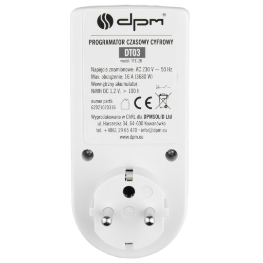Prosty w obsłudze, precyzyjnie odmierze czas. Minimalny czas nastawienia pomiędzy włączeniem a wyłączeniem wynosi minutę. Z pomocą tego urządzenia możesz włączyć pralkę, światło w akwarium oraz każde inne urządzenie zasilane sieciowo podczas Twojej nieobceności.
