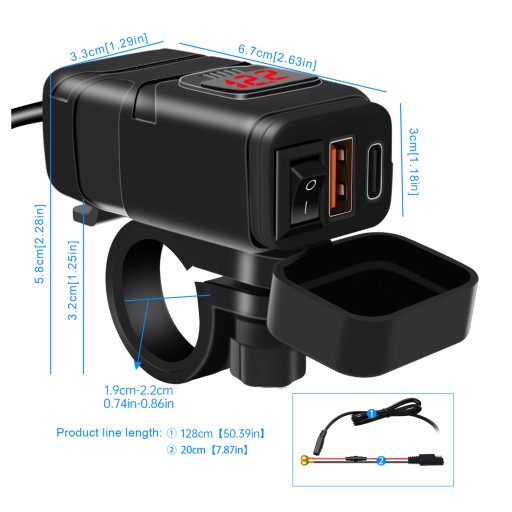 Ładowarka motocyklowa SAE na USB - Produkt został zaprojektowany z interfejsem SAE, który może być używany bezpośrednio z oryginalnym interfejsem SAE. Jest również wyposażony w wiązkę bezpieczników 10 A SAE do zacisków pierścieniowych, które można podłączyć bezpośrednio do akumulatora, co czyni instalację wygodniejszą.