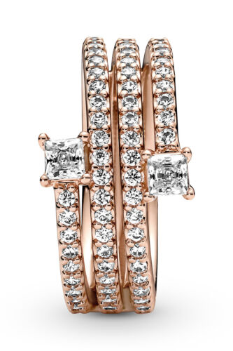 Jeśli lubisz się wyróżniać, pierścionek z potrójną spiralą ma wszystko, czego szukasz. Został wykonany z unikalnego stopu metali platerowanego 14-karatowym różowym złotem, a w jego centrum lśni lekko wypukły, różowy kamień w kształcie serca. Duże, kwadratowe kamienie po obu końcach dodają mu jeszcze więcej blasku. Pierścionek wygląda jak zestaw, dlatego będzie prezentować się wyjątkowo efektownie z innymi lśniącymi ozdobami Timeless. To zniewalająco piękna ozdoba, po którą będziesz sięgać raz za razem.