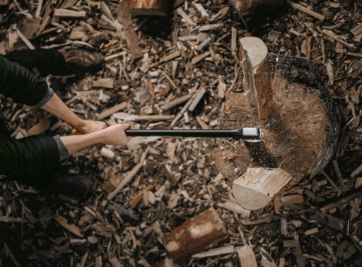 - Ostrze w kształcie klina, idealne do rąbania i rozłupywania średniej wielkości pni