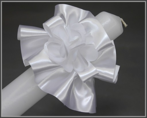 Komplet komunijny,okapnik na świecę, rękawiczki białe pięciopalczaste i torebka satynowa w kształcie woreczka z wkładką pomagającą w zachowaniu kształtu woreczka nawet po obciążeniu. Ozdobiona ślicznym satynowym kwiatem 3D. Woreczek został uszyty z pierwszego gatunku satyny ślubnej. Na pozostałych aukcjach można kupić każdy element zestawu osobno.