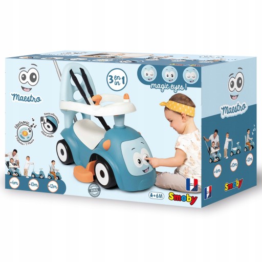 Jeździk Maestro 4w1 Od Smoby ma wiele możliwości zabawy, rośnie razem z dzieckiem. Dzięki akcesoriom, pojazd dopasowuje się do możliwości i potrzeb malucha. Zabawa jeździkiem wpływa na rozwój motoryczny dziecka.