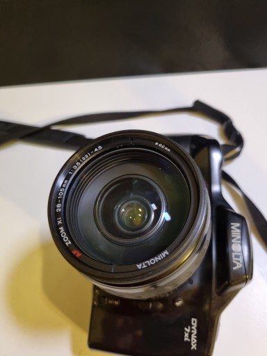 Minolta Dynax 7xi z obiektywem Zoom xi AF 28-105, lustrzanka analog.