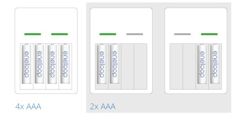 Dodatkowo nie trzeba zapełnić wszystkich kanałów ładowania, aby bezpiecznie naładować akumulatory. Ważne, aby wkładać je parzyście po 2 lub 4.