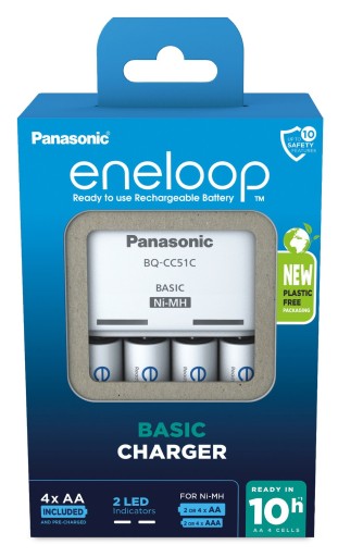 CECHY PRODUKTU Ładowarka akumulatorków Ni-MH Panasonic Eneloop BQ-CC51 + 4 x R6 / AA Eneloop 2000mAh BK-3MCDE