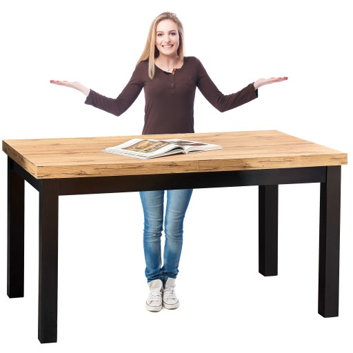 ✅ Stół posiada modną kolorystykę bardzo charakterystyczną dla mebli w stylu skandynawski loft. W przypadku tej oferty jest to połączenie wybarwienia dąb craft z czarną podstawą.