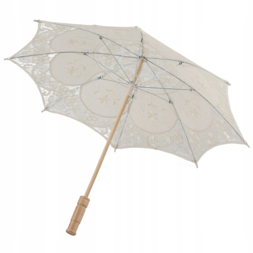2. Powierzchnia parasola wykonana jest z wysokiej jakości koronki, a uchwyt wykonana jest z eukaliptusa.