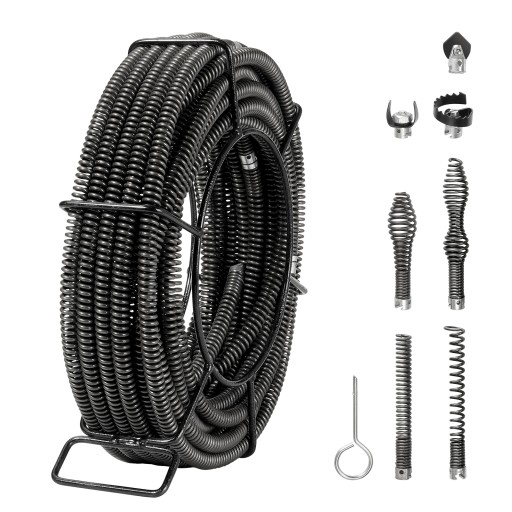 Profesjonalny kabel do czyszczenia rur: Kabel do czyszczenia rur VEVOR o całkowitej długości 66 stóp (około 20 m), średnicy drutu stalowego 5/8 cala (16 mm) i średnicy sprężyny φ3,5 mm zapewnia niezrównaną pomoc w do czyszczenia rur o średnicy od 0,8 do 3,9 cala (20–100 mm).