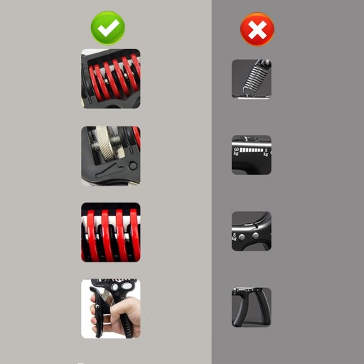 👊💪 【Wysoka jakość i długa trwałość】 Trenażer chwytu wykonany jest z wytrzymałego tworzywa ABS i wzmocnionego stopu metalu, z podwójnie pogrubionymi sprężynami, trwałymi i niełatwymi do odkształcenia. Możesz używać trenażera ręcznego w dowolnym miejscu i czasie, jest bardzo łatwy w użyciu.