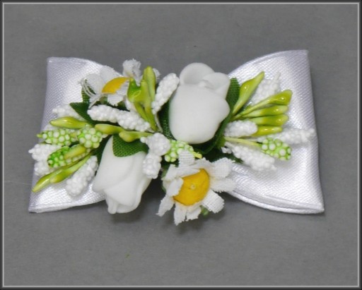 Torebka komunijna uszyta z trzech warstw różnych tkanin( satyna ślubnej, sztywnego tiulu i tkaniny cambel ) ozdobiona koronkową satynową kokardką z delikatnymi kwiatkami. Torebka posiada wkładkę która pomaga w zachowaniu jej kształtu. Do torebki przygotowaliśmy dostępne na pozostałych aukcjach: bransoletkę, okapnik i wianek wykonany z tych samych kwiatków.
