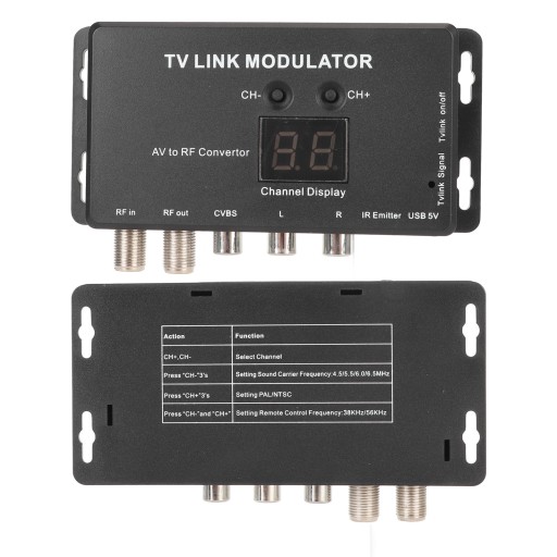 Funkcja:1. ZAKRES CZĘSTOTLIWOŚCI: Modulator RF ma szeroki zakres częstotliwości 471,25-885,25 MHz i jest dostępny w obu formatach.