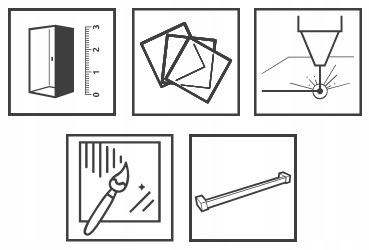 - System mocowania do ściany za pomocą profili umożliwiających niwelację krzywizny ściany.