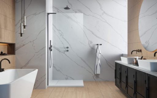 Kabiny Walk-in najbardziej urzekają swoim pięknem gdy są zamontowane na brodziku zlicowanym z poziomem podłogi lub brodziku podpłytkowym.