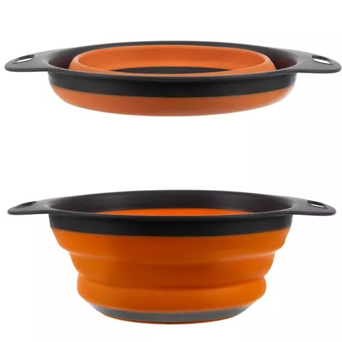 - SPECYFIKACJA - kolor: szaro / pomarańczowy; materiał: TPR + PP; temperatura w jakiej można go użytkować to -10 do 80 ℃; średnica spodu: 11 cm; średnica rantu: 19 cm; wymiary po złożeniu: 23,5 x 2,5 cm; wymiary po rozłożeniu: 23,5 x 8 cm; waga: 109 g; waga w opakowaniu: 111 g.