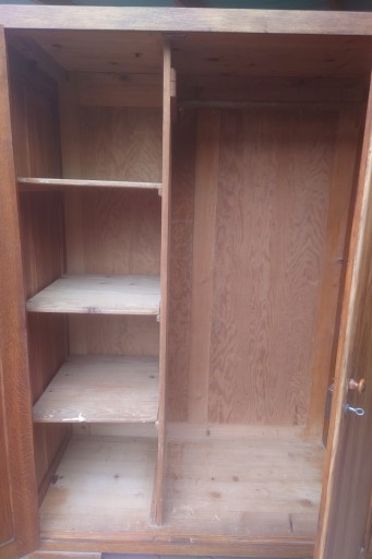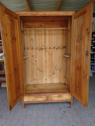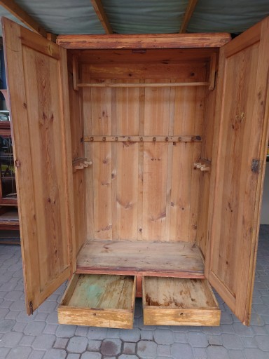 1 na zdjęciach szafa dwudrzwiowa oczyszczona przygotowana do malowania renowacji minimalne uszkodzenia co pokazane na zdjęciach stąd niska cena w.198 x s.110 x g.56 x cena 990zł