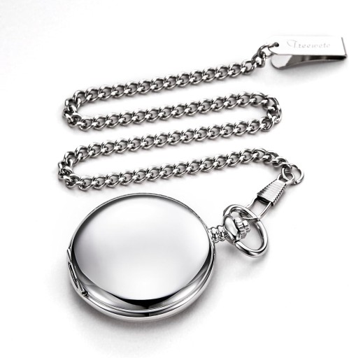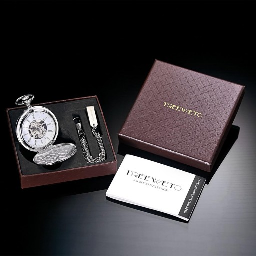 - Zegarek kieszonkowy z łańcuszkiem i pudełkiem na prezent: w dodatkowym dodatku z logo TREEWETO będzie idealnym prezentem dla krewnych i przyjaciół. Najlepszy prezent na Walentynki, Boże Narodzenie, urodziny, ślub itp. Nasze zegarki kieszonkowe mocowane są łańcuszkiem. Klasyczny sposób noszenia jest np. w przypadku garnituru z kamizelką, w kieszeni kamizelki. Alternatywnie można nosić zegarek w lewej kieszeni na piersiach lub w kieszeni spodni.