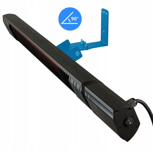 Urządzenie, choć teoretycznie może być montowane na suficie, zostało zaprojektowane z myślą o montażu ściennym. Uchwyt regulujący kąt nachylenia oferuje ograniczone możliwości dostosowania, co uniemożliwia ustawienie promiennika w pozycji równoległej do podłogi. Aby zapewnić optymalne działanie i efektywność ogrzewania, rekomendujemy montaż urządzenia zgodnie z jego przeznaczeniem, czyli na ścianie.